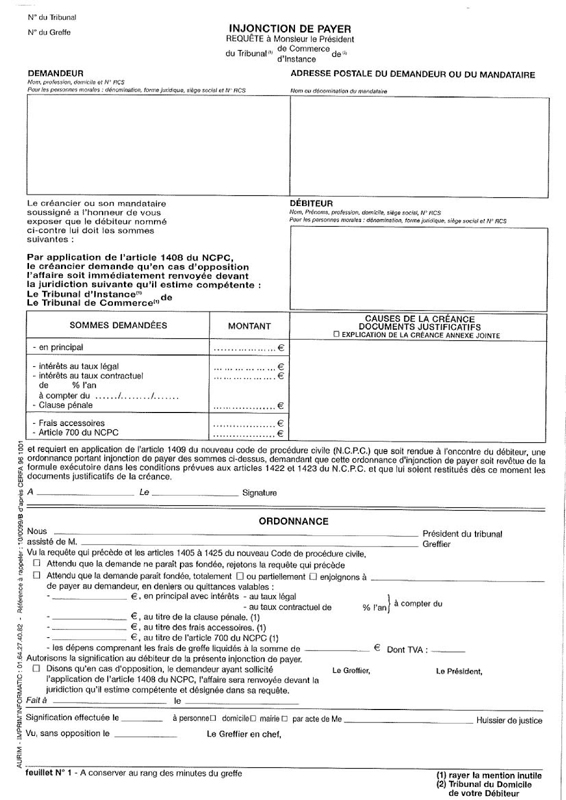Dossier complet d'injonction de payer : Cerfa 12946-01 ...