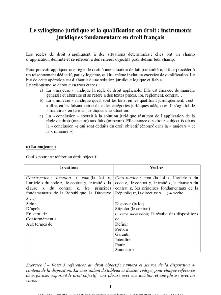 Exemple de syllogisme dans un cas pratique de droit des La première raison est que le syllogisme juridique sert à résoudre les cas pratiques sur lesquels vous. Outil pour tester ou créer des syllogismes. Lors d'un contentieux, cette méthode vous permet de définir rapidement l'issue juridique d'une situation donnée.